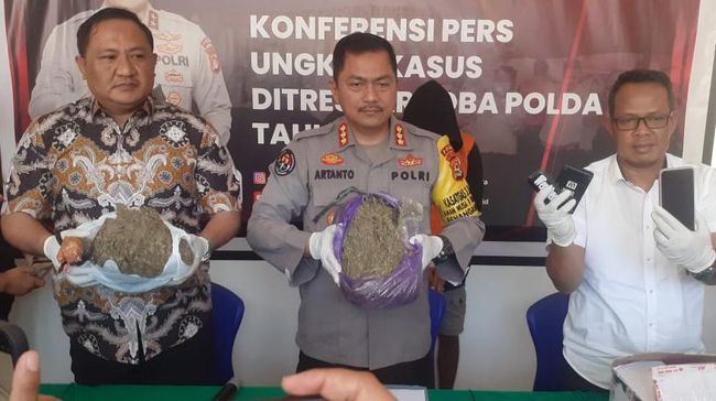 "Jadi tersangka IR ini dibekuk setelah mengambil kiriman ganja di Jalan Montong, Lombok Timur," kata Artanto dalam keterangan pers, Jumat (5/8/2022), di Mapolda NTB.