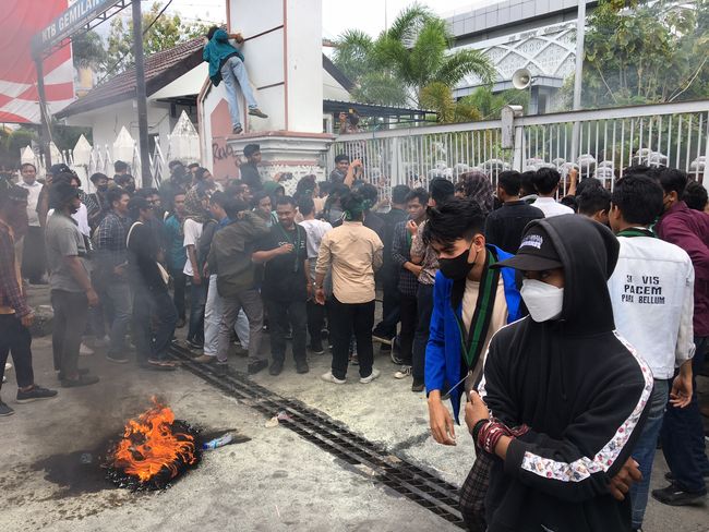 Dari pantauan detikBali, gerbang utara gedung DPRD NTB pun didorong hingga rusak. Seluruh mahasiswa mendesak masuk ke Gedung DPRD untuk bertemu dengan Ketua DPRD NTB.