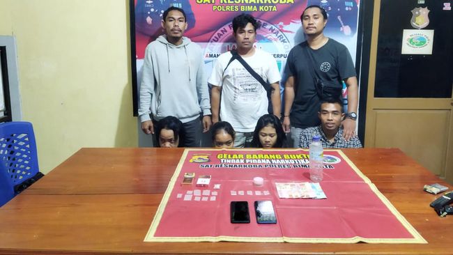 Empat orang warga ditangkap saat tengah asyik pesta sabu di sebuah kamar kos di Kelurahan Mande, Kecamatan Mpuda Kota Bima, Nusa Tenggara Barat (NTB). Mereka yang ditangkap masing-masing inisial IP (17), AP (19), TM (19) dan IF (20).