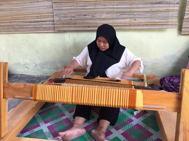 Suara Gedongan (alat tenun) 'tak-tak' mulai terdengar saat pertama kali berdiri di depan rumah Inak Mahni (34) warga yang bermukim di Dusun Bakong, Desa Kebon Ayu, Kecamatan Gerung, Lombok Barat, NTB. Rupanya suara itu berasal dari kayu belida yang ditarik untuk merekatkan benang kain tenun khas desa setempat.