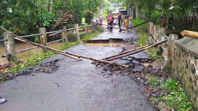 "Jadi tanggul ini longsor 10x10 meter karena tidak mampu menahan air. Kami masih lakukan assessment dan pemantauan tingkat kedaruratan, terutama jembatan miring di Loyok," kata Iwan.