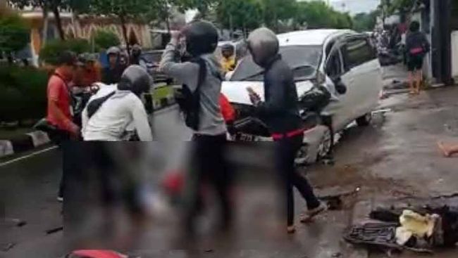"Setelah menabrak dua motor, mobil ini tetap melaju menabrak tiga kendaraan di depannya. Dua kendaraan vVario DR 5456 BS dan DR 5449 CA. Terakhir menabrak Honda Scopy DR 3150 YL dari arah belakang milik korban yang meninggal dunia," kata Bowo.