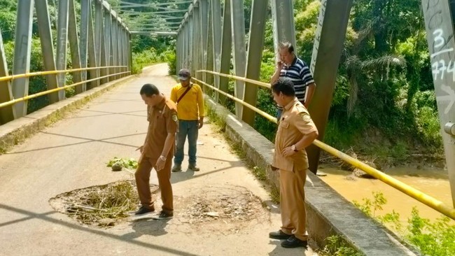 "Mungkin beban berat kendaraan angkut galian C. Lubang ada di beberapa titik di jembatan," kata Suhandi, Rabu (22/3/2023).