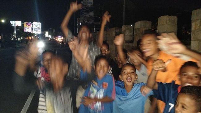 Anak-anak ini terus menunggu hingga rombongan mobil Presiden Jokowi meninggalkan Bandara Komodo pada pukul 19.00 Wita. Mereka yang berdiri di trotoar melambaikan tangan ke arah mobil rombongan Presiden.