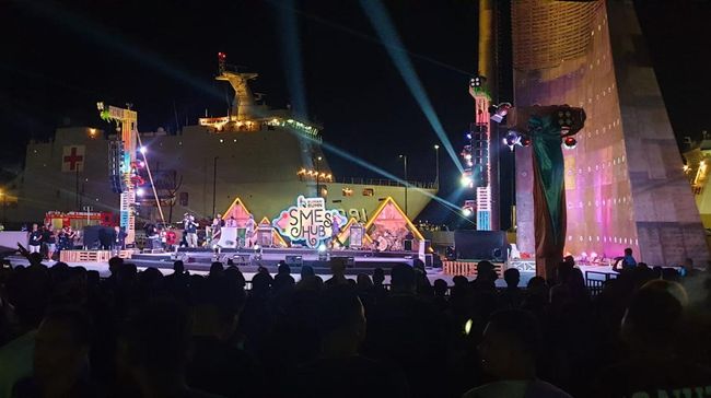 "Kapalnya (KRI WSH) besar sekali. Indah sekali saat lampu panggung mengarah ke kapal," lanjutnya.