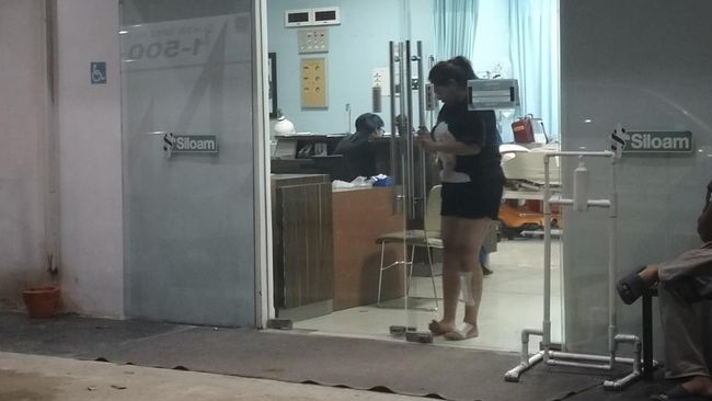 Berselang lima menit kemudian, dua wisdom pria juga keluar dari UGD RS Siloam. Salah satunya terlihat perban di punggung kaki kiri dan ibu jari tangan kiri. Seorangnya lagi hanya mengeluh sakit di bagian punggung.