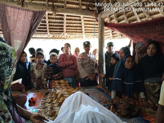 Satu dari dua orang terseret ombak saat mancing ikan di Pantai Orong Bukal, Desa Buwun Mas, Kecamatan Sekotong, Lombok Barat, Nusa Tenggara Barat (NTB), Sabtu (22/7/2023) ditemukan tewas. Korban atas nama Muslimin (20) ditemukan tewas mengambang sekitar 200 meter dari lokasi kejadian.