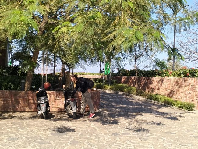 Bule laki-laki tersebut adalah pengunjung pertama Puncak Waringin. Ia datang seorang diri mengendarai sepeda motor.