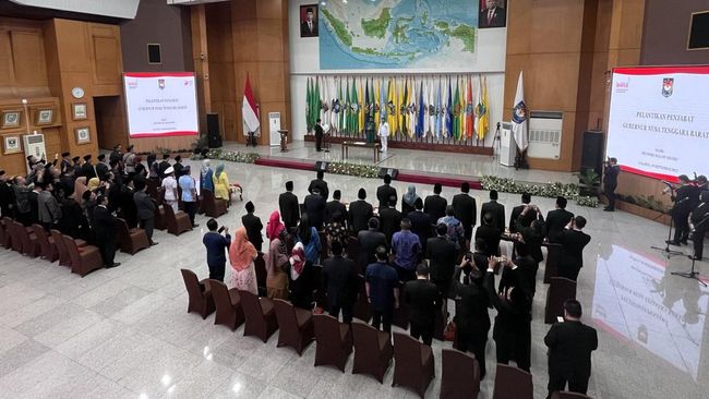 Menteri Dalam Negeri (Mendagri) Tito Karnavian resmi melantik Penjabat (Pj) Gubernur Nusa Tenggara Barat (NTB) Lalu Gita Ariadi. Pelantikan dihelat di Gedung Sasana Bhakti Praja Kantor Kementerian Dalam Negeri (Kemendagri) Jakarta Pusat pada Selasa pagi (19/9/2023).