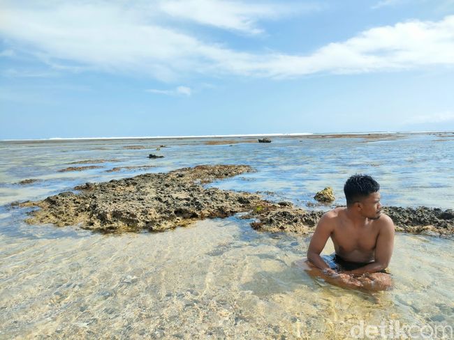 "Sore baru ada dia (kubangan air di karang), kalau pagi air laut masih pasang. Harus tunggu air surut dulu," jelasnya.