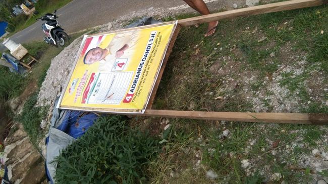 Bakal calon legislatif (bacaleg) DPRD Manggarai, Adrianus Dandi, menurunkan balihonya sendiri agar tidak rusak. Penurunan alat peraga kampanye itu dilakukan sejak Senin (30/10/2023).