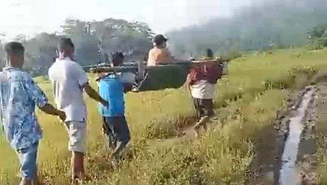 Dalam video yang diterima detikBali, terlihat sejumlah warga bergantian menandu Nikolas. Pasien tersebut duduk di sarung yang bagian sisinya dimasukkan bambu untuk dipikul warga. Mereka melintasi jalan berlumpur yang membelah sawah.