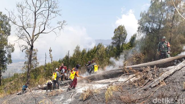 "Yang terbakar semak, perdu, rumput dan dedaunan kering, pohon, pohon bak-bakan, cemara gunung, saropan, dan tanaman akasia," ungkap Dwi.