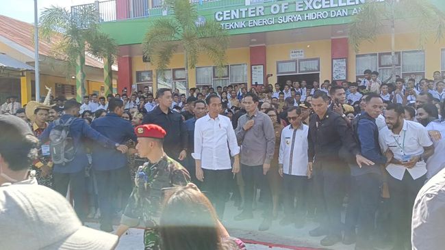 Pantauan detikBali, dalam kunjungannya, Jokowi disambut meriah oleh para siswa-siswi dengan paduan suara. Dia lalu berjalan menyapa mereka dengan senyum semringah.