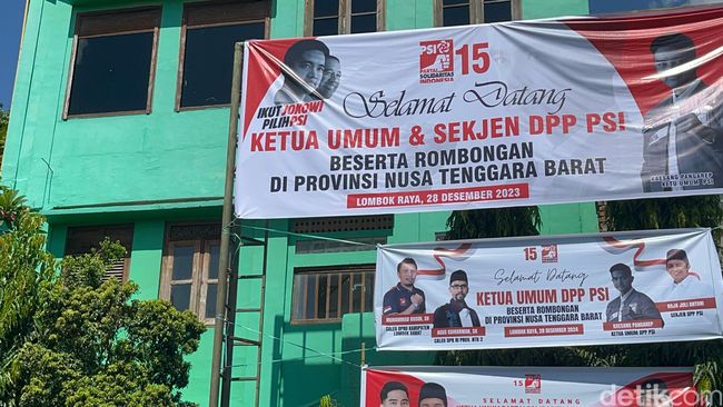 Selain baliho bertuliskan 'Ikut Jokowi Pilih PSI', terdapat juga baliho dengan tulisan 'PSI Partai Jokowi'. Sejumlah jalan arteri di Kota Mataram juga terpasang atribut PSI.