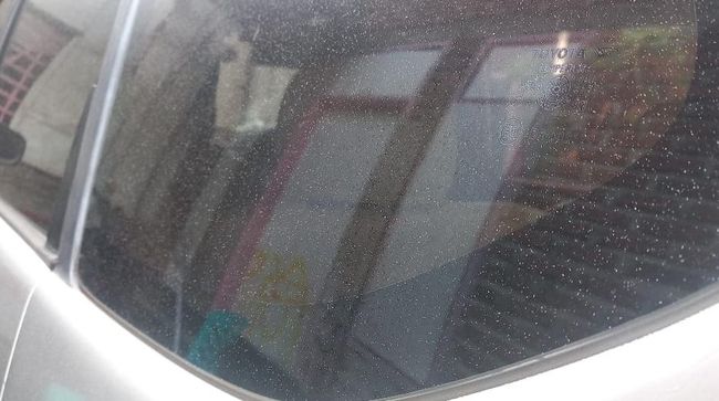 Abu vulkanik Gunung Lewotobi Laki-laki menyebar di Larantuka, Flores Timur, Nusa Tenggara Timur (NTT), pada Selasa (9/1/2024). Abu tersebut mengotori jendela rumah dan kaca mobil warga setempat.