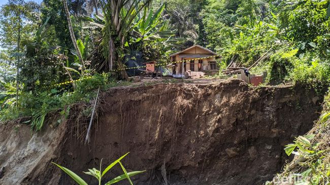 Pantauan detikBali, longsor tersebut sudah merembet ke dekat permukiman warga. Jarak lokasi longsor dengan tiga rumah warga sekitar 6-10 meter.