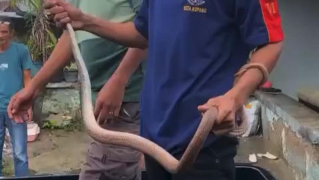 Dalam video berdurasi 39 detik yang beredar di media sosial (medsos), ular itu tersangkut di dalam tumpukan karung dan plastik. Sejumlah petugas dari Dinas Pemadam Kebakaran (Damkar) Kota Kupang pun turun tangan untuk menangkap menggunakan tongkat penangkap ular.