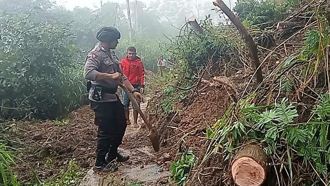 "Kendaraan roda empat belum bisa lewat, masih terhalang material tanah," ujar Erick.