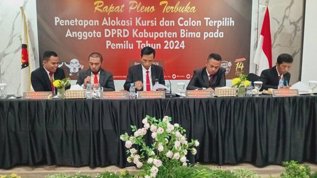 Penetapan alokasi kursi dan 45 calon anggota DPRD Kabupaten Bima terpilih pada Pemilu 2024 tersebut dilakukan melalui rapat pleno terbuka, Selasa (28/5/2024).