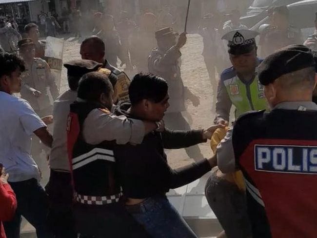 "Ada 35 orang itu saling dorong dengan aparat kepolisian. Akibatnya, gerbang dan pagar kantor KPU roboh," kata Sulaeman kepada detikBali, Rabu malam.