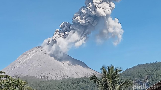 Gunung Lewotobi Laki-laki di Flores Timur, Nusa Tenggara Timur (NTT), terus bergemuruh. Gunung kembar itu hampir setiap hari menumpahkan abu vulkanik ke udara hingga menghujani apapun yang berada di bawahnya. Walhasil, warga di lereng Gunung Lewotobi kembar harus berdamai dengan hujan abu vulkanik yang terjadi hampir saban hari.