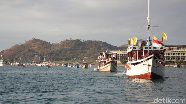 Ada dua pinisi yang ikut prosesi laut tersebut. Sebanyak 50 ketinting yang dihiasi bendera merah putih ikut dalam prosesi ini dan menyusul pinisi di depan mereka. Ketinting itu umumnya milik nelayan muslim di Labuan Bajo.