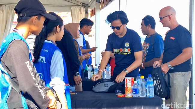 Pantauan detikBali di pintu masuk Gate 1 Sirkuit Internasional Mandalika, ratusan penonton mulai memasuki area pengecekan barang setelah dipasangi gelang MotoGP oleh petugas. Setelah mendapatkan gelang, barang-barang bawaan diperiksa oleh kru tiket. Dalam proses tersebut, beberapa penonton tampak kecewa karena barang yang mereka bawa tidak diperbolehkan masuk.