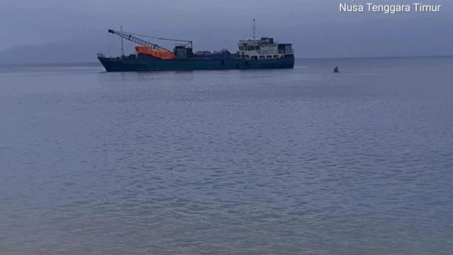 Kapal Motor (KM) Tefelink kandas di perairan Teluk Hading, Kecamatan Tanjung Bunga, Kabupaten Flores Timur, Nusa Tenggara Timur (NTT), sekitar pukul 15.30 Wita, Senin (10/2/2025). Kapal dengan rute Surabaya ke Maluku itu memuat 17 orang.