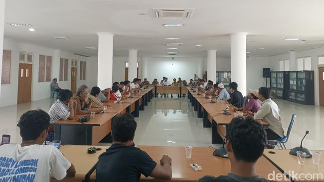 Puluhan warga Selong Belanak, Kecamatan Praya Barat, Lombok Tengah, yang tergabung dalam Aliansi Pedagang Kelontong Selong Belanak mendatangi gedung DPRD setempat untuk beraudiensi, Senin (28/4/2025). Mereka menyampaikan alasan menolak minimarket Sahni-Mart atau M-Mart. Dalam pertemuan tersebut, Komisi II DPRD Lombok Barat meminta minimarket tidak buka sampai verifikasi tuntas.