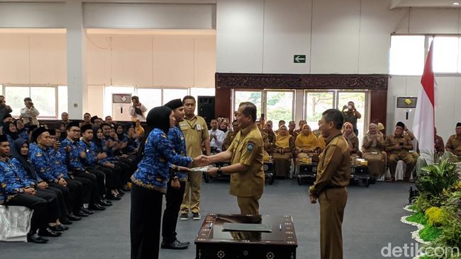 Pemerintah Provinsi (Pemprov) Nusa Tenggara Barat (NTB) menyerahkan surat keputusan (SK) tahap I Calon Pegawai Negeri Sipil (CPNS) dan Pegawai Pemerintah dengan Perjanjian Kerja (PPPK) lingkup Pemprov NTB, Senin (26/5/2025). Di antara mereka, ada yang sudah mengabdi 18 tahun sebagai pegawai honor sebelum diangkat menjadi PPPK.