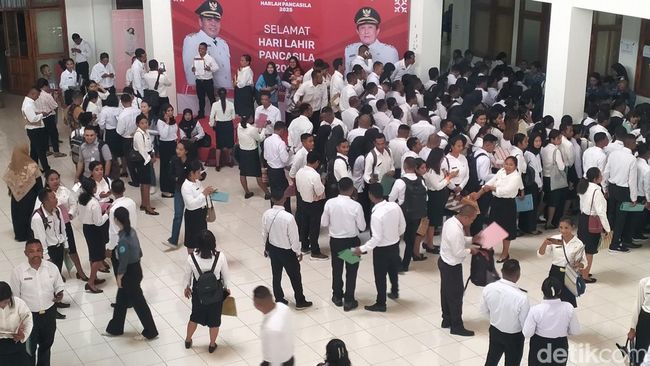 Ribuan Pegawai Pemerintah dengan Perjanjian Kerja (PPPK) lingkup Pemerintah Kabupaten (Pemkab) Manggarai Barat tampak semringah di Kantor Bupati Manggarai Barat, Senin (2/6/2025). Beberapa di antara mereka langsung berpelukan sesuai menerima Surat Keputusan (SK) pengangkatan PPPK Tahap I.