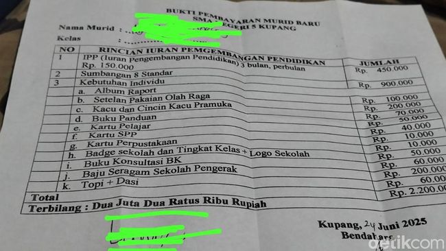 "Keluhan para orang tua terkait pungutan yang memberatkan saat mendaftar ulang di sekolah negeri terus disampaikan kepada Ombudsman NTT. Rupa-rupa item pungutan dimasukkan dalam biaya pendaftaran sehingga memberatkan para orang tua," ujar Darius dalam rilis yang diterima, Rabu (25/6/2025).