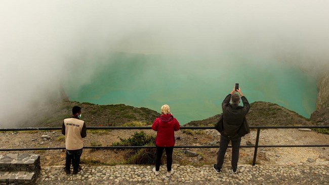 Suhu air danau kawah Gunung Kelimutu di Kabupaten Ende, Nusa Tenggara Timur (NTT), meningkat, Selasa (26/8/2025). Bau belerang juga semakin menyengat. Hal itu diungkapkan oleh Kepala Badan Geologi, Muhammad Wafid.