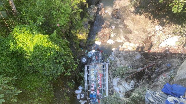 "Truk yang tidak terkendali tersebut kemudian menabrak pembatas jalan dan terjatuh ke dalam jurang yang berada di sisi jalan," ungkapnya.