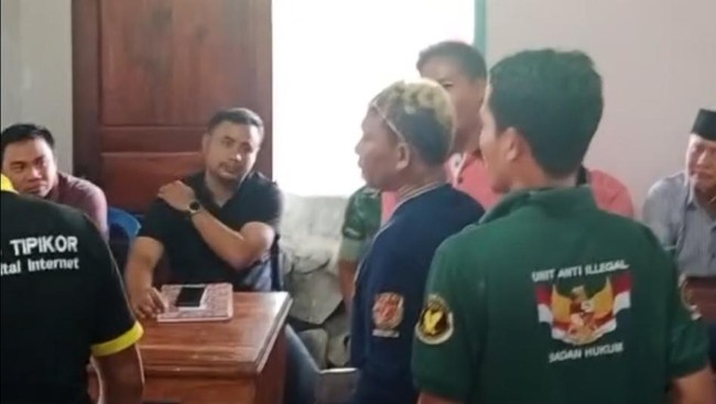 Sejumlah orang yang tergabung dalam organisasi masyarakat (ormas) adu mulut dengan warga saat menagih kredit macet di Kantor Desa Ncandi, Kecamatan Madapangga, Kabupaten Bima, Nusa Tenggara Barat, (NTB), Jumat, (3/10/2025). Peristiwa itu viral di media sosial (medsos).