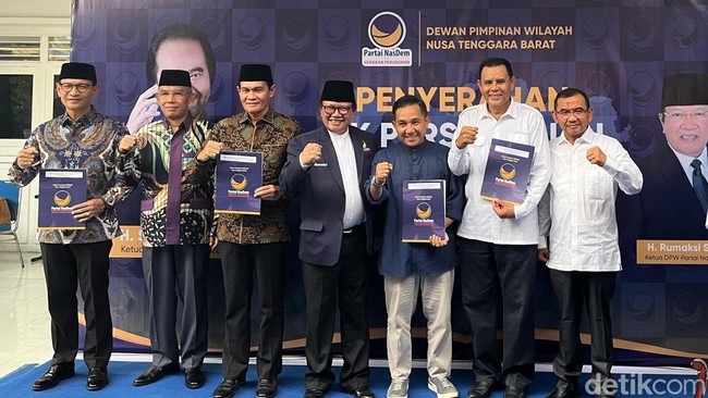 Partai NasDem resmi mengusung petahana Mohan Roliskana-TGH Mujiburrahman atau HARUM jilid II di Pemilihan Wali Kota (Pilwalkot) Mataram 2024. Mohan-Mujib menerima langsung SK rekomendasi model B.Persetujuan Parpol KWK (B1KWK) pada Kamis (22/8/2024) di Kantor DPW NasDem NTB.