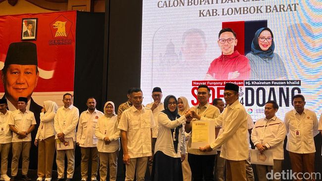 Partai Gerindra resmi mengusung pasangan Nauvar Furqani Farinduan-Khairatun Fauzan Khalid (Farin-Khairatun) untuk maju di Pemilihan Bupati (Pilbup) Lombok Barat 2024.