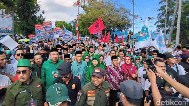 Pantauan detikBali, iring-iringan pengantar Rohmi-Firin memadati sepanjang Jalan Langko dari depan Kantor KPU NTB sampai dengan Islamic Center Hubbul Wathan NTB. Suasana semakin semarak dengan tabuhan alat musik gendang beleq khas Suku Sasak, barongsai, hingga kecimol.