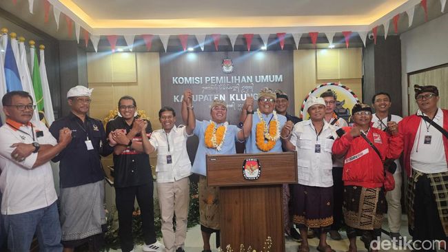 "Senang sekali bisa ikut antarkan anak (mendaftar ke KPU). Pokoknya Klungkung Jaya," ungkap dia.