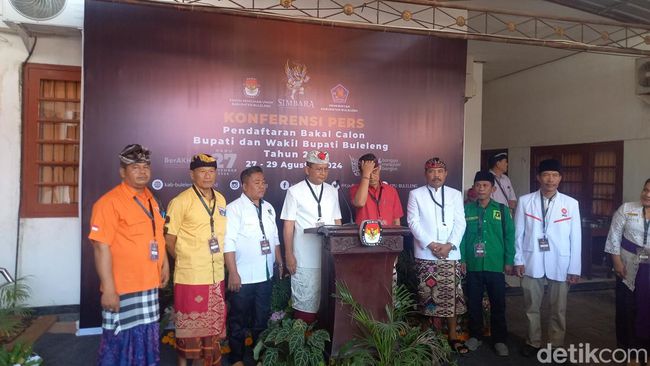 Pasangan Sutjidra-Supriatna resmi mendaftar ke KPU Buleleng, Kamis (29/8/2024). Pendaftaran mereka diiringi parade budaya yang menampilkan Tari Sakral Sang Hyang Penyalin dari Desa Pancasari hingga Tari Wayang Wong dari Desa Tejakula.