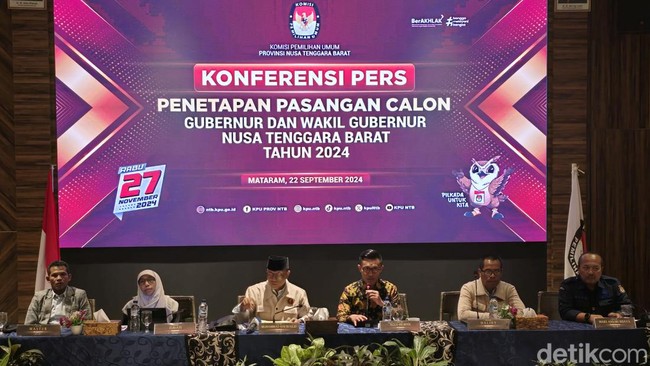 Komisi Pemilihan Umum (KPU) Nusa Tenggara Barat (NTB) resmi menetapkan tiga pasangan calon (paslon) yang berkontestasi dalam Pemilihan Gubernur (Pilgub) NTB 2024. Keputusan tersebut diambil dalam rapat pleno yang digelar di Lombok Astoria Hotel, Mataram, pada Minggu (22/9/2024).
