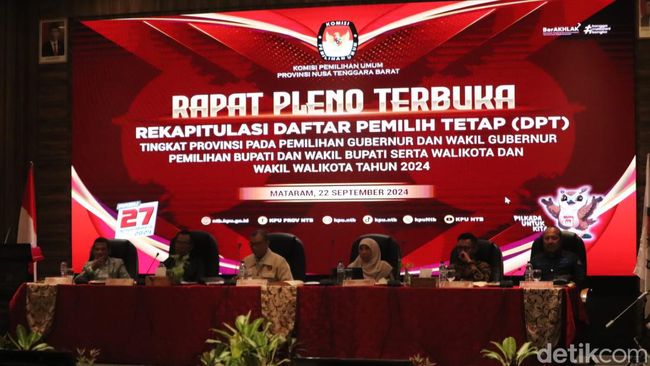 Komisi Pemilihan Umum (KPU) Nusa Tenggara Barat (NTB) menetapkan jumlah daftar pemilih tetap (DPT) untuk Pemilihan Kepala Daerah (Pilkada) Serentak 2024 sebanyak 3.964.325 pemilih. Kantong pemilih terbesar di NTB tersebar di Kabupaten Lombok Timur dengan 994.467 pemilih.