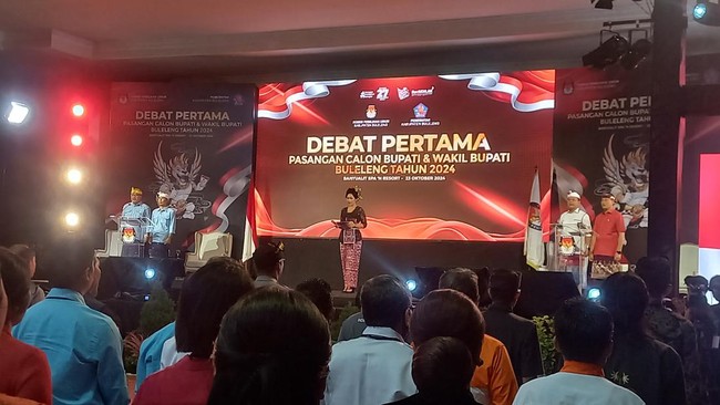 KPU Buleleng menggelar debat perdana pemilihan calon bupati dan wakil bupati Buleleng, Rabu (23/10/2024). Debat diawali dengan pemaparan visi misi dari masing-masing pasangan calon (paslon).