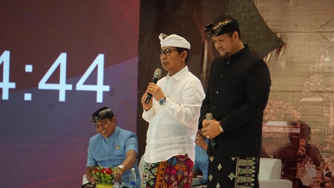 "Tantangan ke depan Badung dalam menjaga keberlangsungan pariwisata ini, di antara masalah macet, sampah, dan air bersih. Kami Adi-Cipta berkomitmen akan membangun ruas jalan untuk mengatasi masalah macet," kata Adi Arnawa saat debat perdana Pilbup Badung 2024 di The Trans Resort Bali, Jumat (25/10/2024).