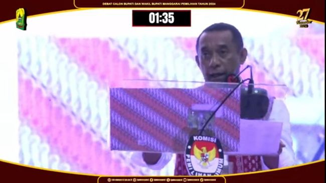 Pasangan calon bupati-wakil bupati Manggarai, Heribertus GL Nabit-Fabianus Abu (Heri-Fabi) memaparkan visi-misi dalam debat publik yang digelar Komisi Pemilihan Umum (KPU) Manggarai, Rabu (30/10/2024). Paslon nomor urut 2 dalam Pemilihan Bupati (Pilbup) Manggarai 2024 itu menawarkan Manggarai sejahtera hingga berdaya saing.