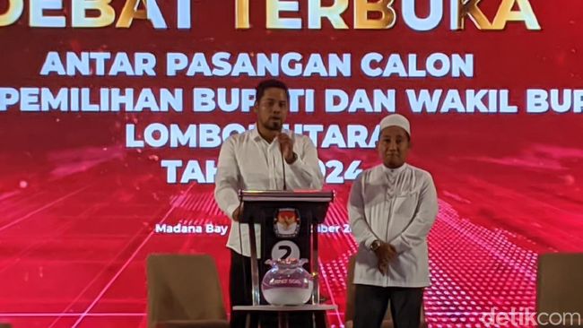 Pasangan calon bupati dan wakil bupati Lombok Utara nomor urut 2 Danny Karter Febrianto-Zaki Abdullah berjanji akan melanjutkan pencapaian program pembangunan jika menang Pilbup 2024. Hal itu disampaikan Danny pada penyampaian visi-misi di debat perdana, Rabu (30/10/2024).