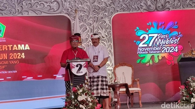 Debat perdana Pilbup Tabanan 2024 digelar pada Kamis (31/10/2024) malam di Bali Sunset Road Conventions Centre, Denpasar. Adapun tema debat perdana yang digelar KPU Tabanan adalah 'Memperkuat Pertumbuhan Ekonomi yang Berkelanjutan'. Debat kedua rencananya akan digelar pada 13 November dan debat terakhir pada 20 November 2024.