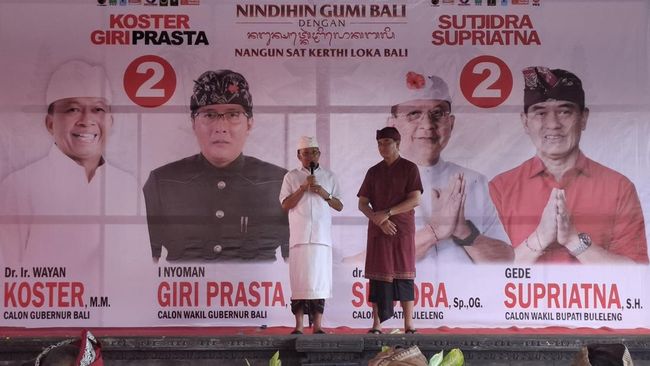 "Jadi sudah ada konsep membangun, pantesne sing (tidak) perlu toleh kiri kanan, jeg menangkan Koster-Giri dan Sutjidra-Supriatna," pinta Koster kepada warga Penarukan.