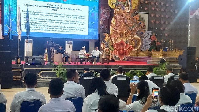 Sebagai informasi, paslon nomor urut 1, Made Muliawan Arya alias De Gadjah-Putu Agus Suradnyana (Mulia-PAS) menjalani uji publik di Undiksha lebih dahulu pada Selasa (5/11/2024). Sementara paslon nomor urut 2 Wayan Koster-I Nyoman Giri Prasta (Koster-Giri) menjalani uji publik di Undiksha hari ini.